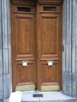 Quelques exemples de décoration en faux bois de portes d'immeubles réalisées par notre artiste peintre
